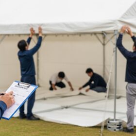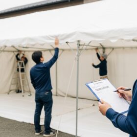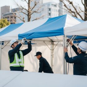 ハル企画では企業や町内会などの組織・団体が企画するイベント設営・会場設営・レンタル備品を手掛けています。夏祭りや忘年会・新年会といった楽しいイベントから、社員総会や展示会といったフォーマルなイベントまで幅広く請け負っているところが強みです。