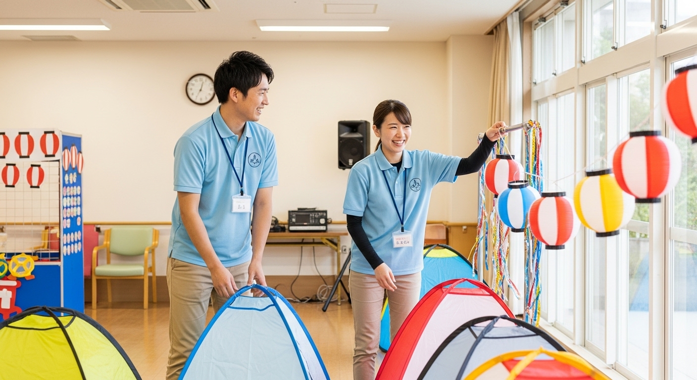 私たちハル企画は、2022年の設立以来、すでに150件以上のイベント設営を手がけてまいりました。その最大の特徴は、老人ホームや病院などの医療・福祉施設から、一般企業、町内会、そして自治体まで、本当に幅広い組織・団体様からご依頼をいただいているという点です。
