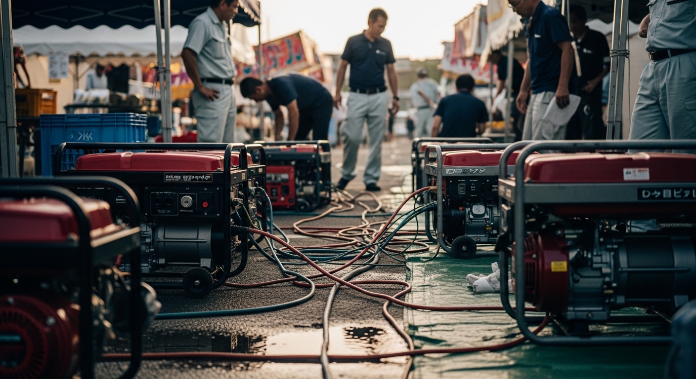 本記事では、瀬戸エリアの祭り現場で実際に起きやすいトラブルと、発電機のデメリットを抑えながら安全に使うための運用ポイントを、イベント設営会社の視点から解説します。